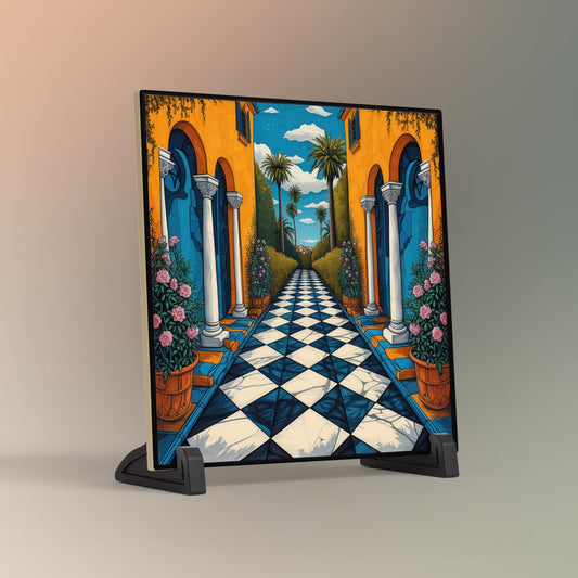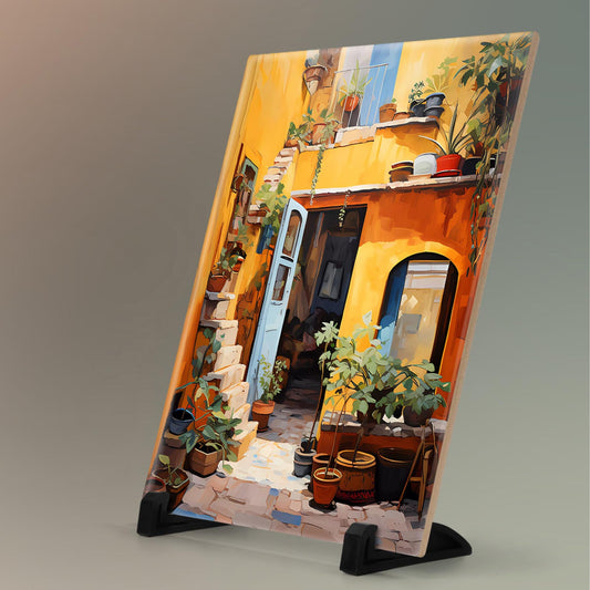 Quaint Mediterranean Ceramic Tile, Rustic Streetside Wall Art for Unique Home Décor, Colorful 8x10" Art for Small Spaces, Quirky Wall Decor