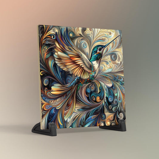 Art Nouveau Hummingbird Ceramic Tile - Unique Nature Lovers Decor - Minimalist Wall Hanging for Gift Giving - Artisan Home Wall Tiles