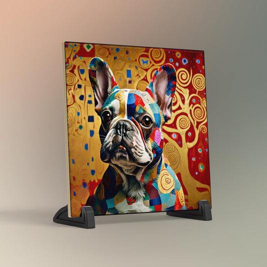 Klimt Inspired French Bulldog Art Tile - Vibrant Art Print - Pet Lovers Decorative Wall Decor - Gallery Wall Art - Ready to Display