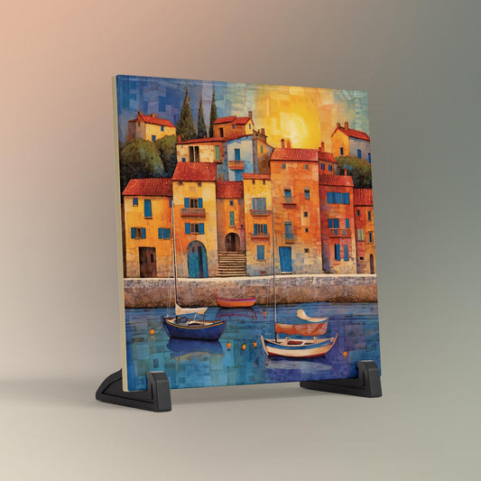 Mediterranean Harbor Ceramic Tile Art, Mosaic Look Decor Tile for Kitchen or Bathroom, Coastal Art, Gallery Wall Decor