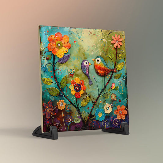 Quirky Birds Ceramic Tile Art II, Whimsical Folk Art Decor for Bird Lovers, Perfect Nature-Inspired Gift and Home Accent