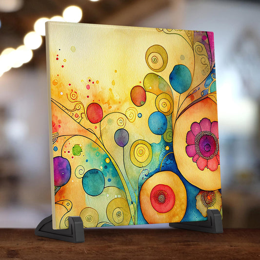Whimsical Flowers Ceramic Tile Art - Watercolor Floral Artwork - Nature Lovers Home Decor - Unique Wall Hanging - Gallery Wall Art