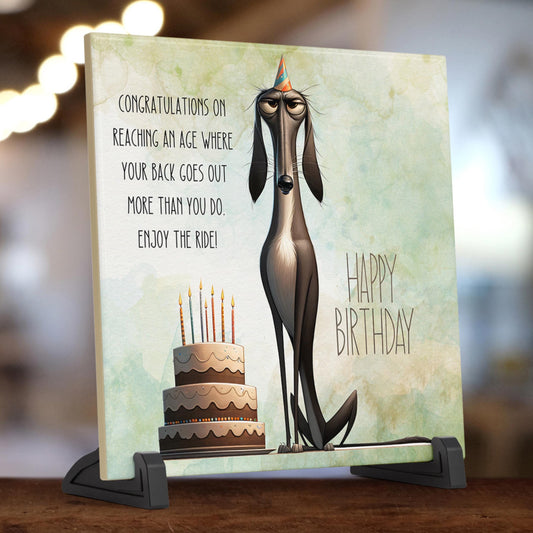 Funny Birthday Ceramic Tile | Sarcastic Animal Birthday Greeting | Friend Birthday Gift | Personalized Gift | Birthday Gift | Quirky Dog