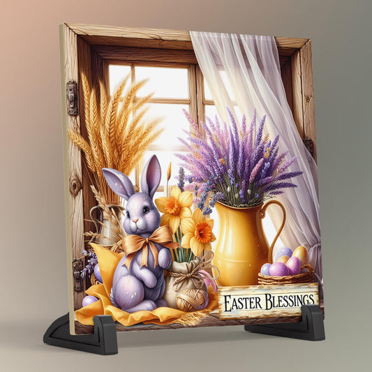 Easter Blessing Ceramic Tile | Rabbit Art | Ceramic Wall Tile | Spring Decor | Easter Bunny Art Sign | Trivet Spoon Rest Available