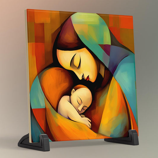 Madonna and Child Ceramic Tile Art, Picasso Style Modern Art Print, Spiritual Home Decor, Mother's Day Gift, Virgin Mary Art, Catholic Art
