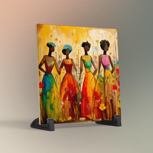 Abstract African Art Ceramic Tile - Colorful Minimalist African Print - Decorative Wall Hanging - Black Art - African American Art
