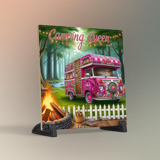 Camping Queen Art Tile, Scenic Adventure Decor for RV Life, Thoughtful Gift for Nature Lovers and Outdoor Explorers