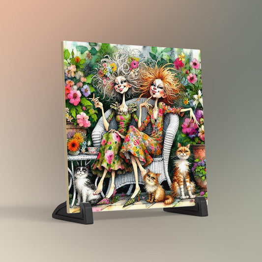 Quirky Women Best Friend Art Tile, Funny Cat Lady Decor, Perfect Gift for Cat Lovers, Hilarious Bestie Birthday Gift