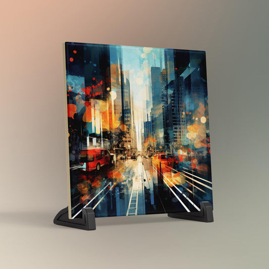 Mid-Century Modern Ceramic Tile Art, Abstract City View Wall Decor, Unique Artistic Accent for Home, Perfect Gift for Art Lovers