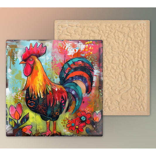 Rooster Folk Art Ceramic Tile | Whimsical Kitchen Decor | Farmhouse Style | Country Chic Rooster Art