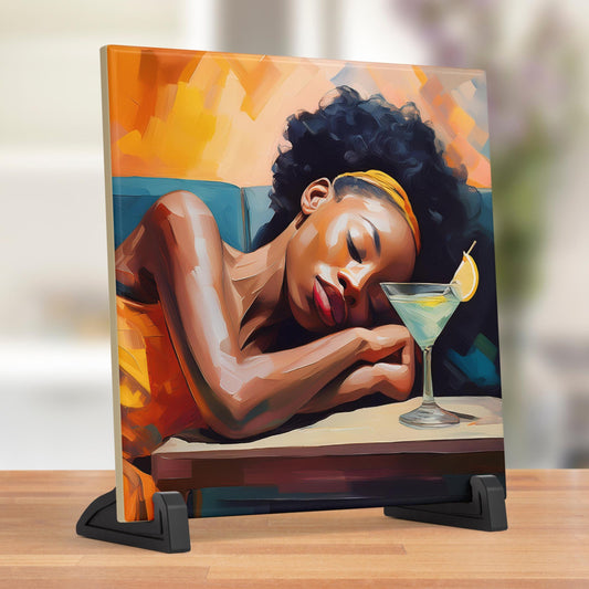 Black Woman with a Martini on Couch