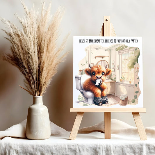 Funny Bathroom Highland Cow Art