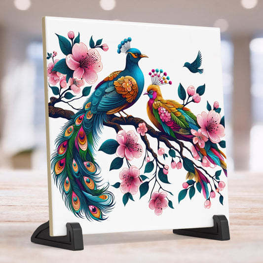 Colorful Birds Ceramic Art Tile, Whimsical Wildlife Decor for Bird Lovers, Perfect Birthday Gift and Nature-Inspired Wall Art