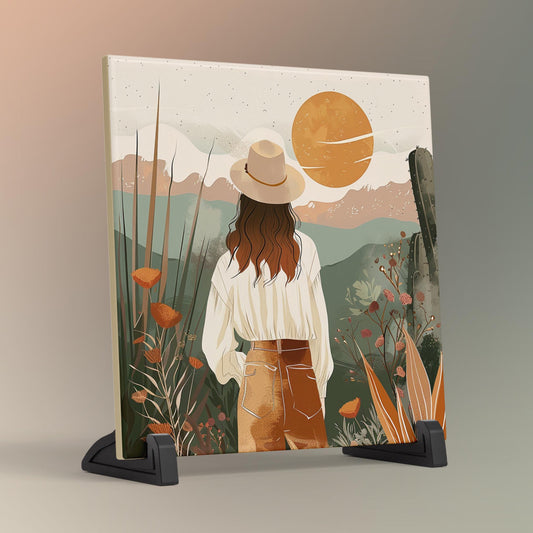 Boho Desert Art Ceramic Tile, Minimalist Handmade Ceramic Wall Decor for Unique Home Accent, Perfect Nature Inspired Gift