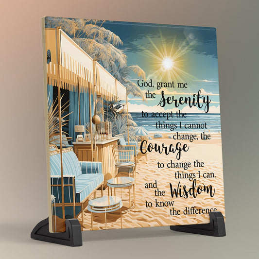 Serenity Prayer Ceramic Tile, Beautiful Coastal Art Print with Uplifting Quote, Perfect Gift for Encouragement and Home Decor - 3 Styles