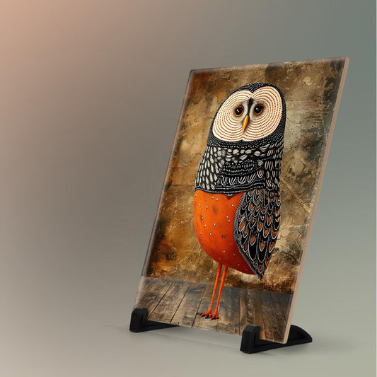 Whimsical Owl Folk Art Ceramic Tile - Unique Nature Lovers Decor - Minimalist 8x10" Wall Hanging for Gift Giving - Artisan Home Wall Tiles