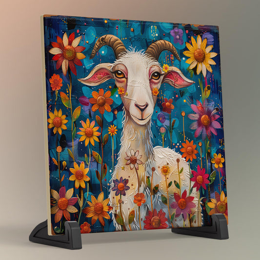 Whimsical Goat Ceramic Art on Tile, Folk Art Animal Decor, Farmhouse Style Print