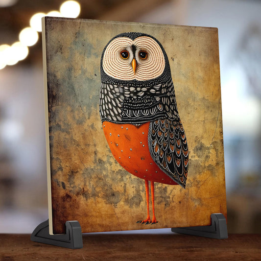 Whimsical Owl Folk Art Ceramic Tile - Unique Nature Lovers Decor - Minimalist Wall Hanging for Gift Giving - Artisan Home Wall Tiles
