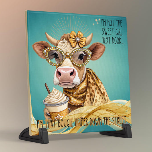 Funny Cow Ceramic Wall Art Tile, Sassy Quote Kitchen Decor - "I'm Not the Sweet Girl Next Door" Print for Humor Lovers