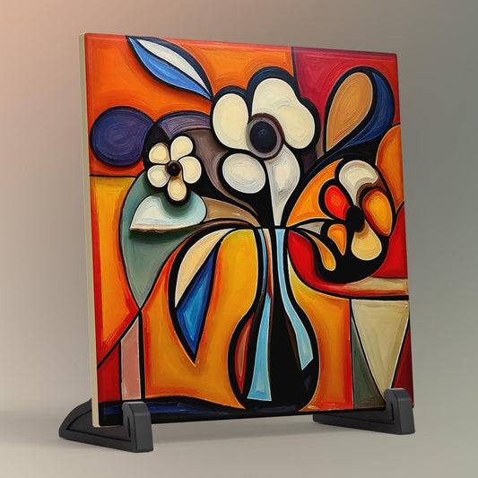 Ceramic Tile Art- Cubism Art - Vibrant Abstract Wall Decor - Home Decor Accent Piece - Ideal Gift for Housewarming or Art Lover