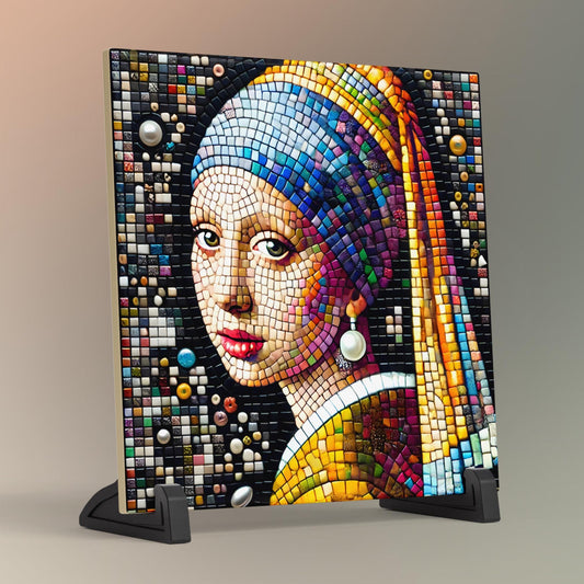 Girl with a Pearl Earring by Vermeer Tile Art, Elegant Mosaic Effect Ceramic Wall Decor, Timeless Gift for Art Lovers & Collectors