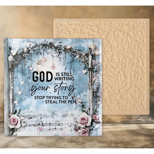 Quote Art Christian Ceramic Tile - "God is Still Writing Your Story" - Inspirational Home Decor - Motivational Religious Artwork