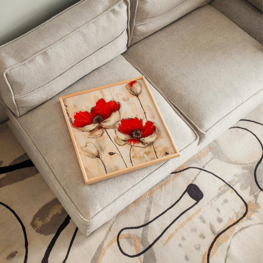 Red Flowers Ceramic Wall Tile, Charming Rustic Farmhouse Art, Home Decor for Kitchen or Gallery Wall Tile for Living Room
