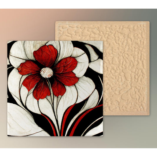 Tropical Flower Art Nouveau Tile, Beautiful Black and Red Art Deco Home Decor, Unique Gift for Art Lovers