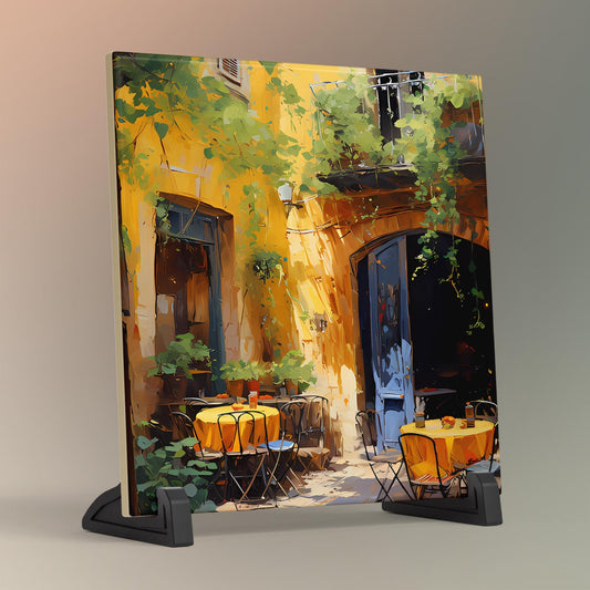 Rustic Cafe Ceramic Tile, Beautiful Quaint Mediterranean Art for Home Decoration, Unique Gift for Housewarming