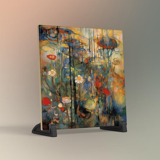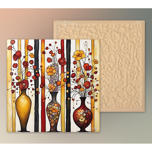 Klimt Inspired Ceramic Art Tile - Flower Art - Vibrant Floral Wall Decor, Home Decor Accent Piece - Ideal Gift for Housewarming or Art Lover