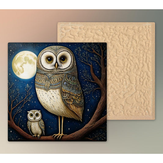 Owls in the Moonlight Tile Art, Unique Minimalist Bird Home Decor, Ideal Gift for Nature Lovers and Owl Enthusiasts