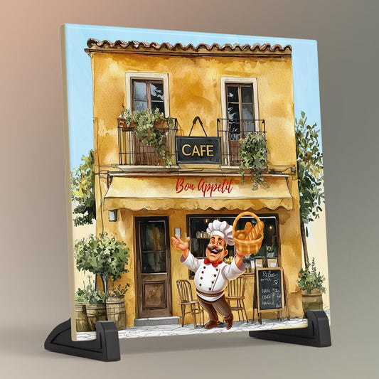 Bon Appetite Cafe Art Tile, Stylish Outdoor Cafe Decor, Unique Kitchen Gift for Food Lovers and Chefs