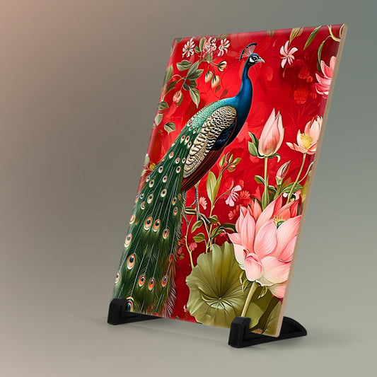 Ceramic Tile Art of Beautiful Peacock, Custom William Morris Style for Unique Home Decor, Perfect Gift for Nature Lover - 8x10" Art Print
