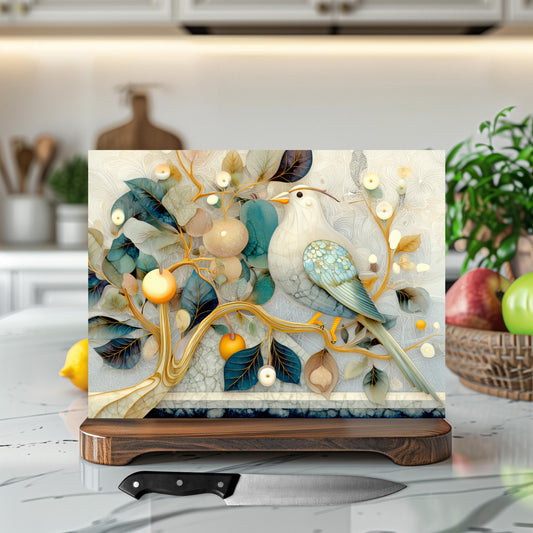 Whimsical Birds Tempered Glass Cutting Board, Artistic Kitchen Essential for Meal Prep & Display, Ideal Gift for Home Chefs