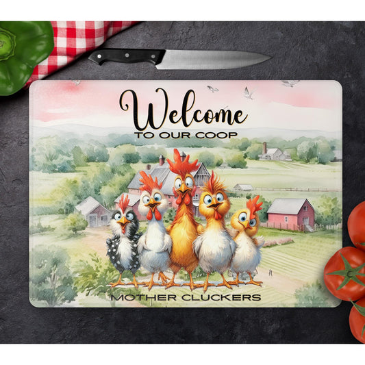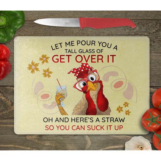 Glass Cutting Board - Quirky Sarcastic Chicken Tempered Glass Chopping Board for Cheese & Charcuterie, Functional Kitchen Art - Home Decor