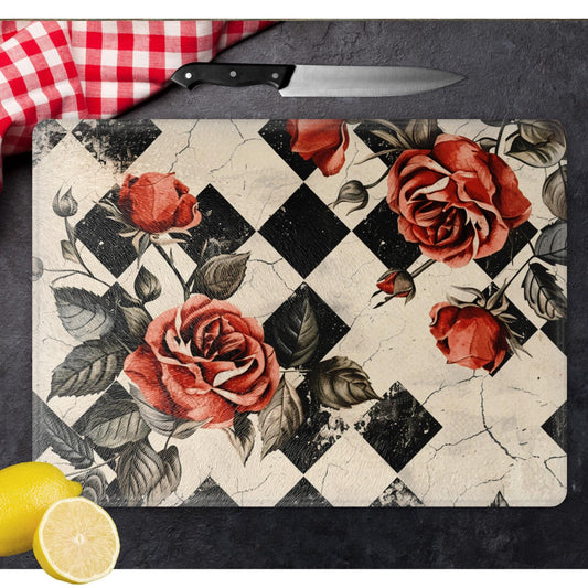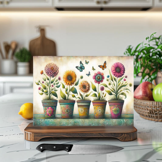 Vintage Potted Flowers Glass Cutting Board - Beautiful Tempered Glass Cheese & Charcuterie Board - Ideal Hostess Gift for Kitchen