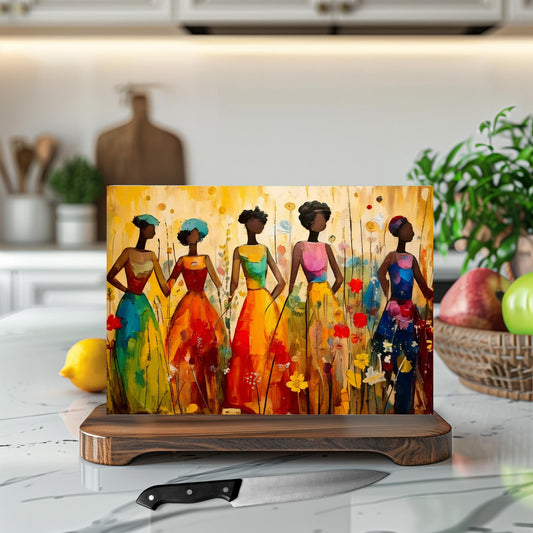 Afrocentric Glass Cutting Board, Charcuterie Board, Serving Tray, Hostess Housewarming, African Decor, Functional Kitchen Art