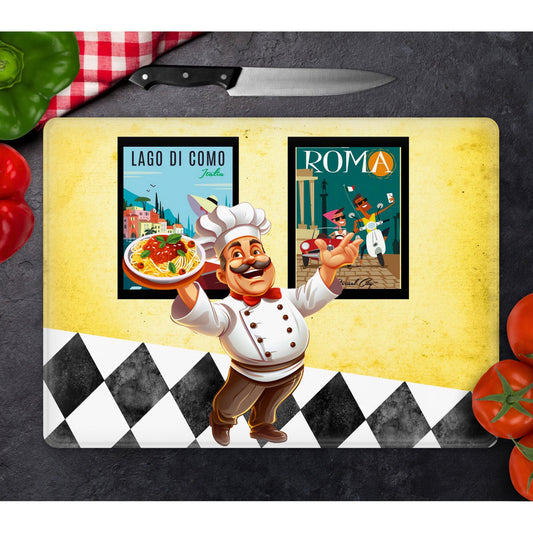 Italian Chef Glass Cutting Board, Tempered Glass Chopping Board, Perfect for Cheese & Charcuterie, Functional Kitchen Art Home Decor Gift