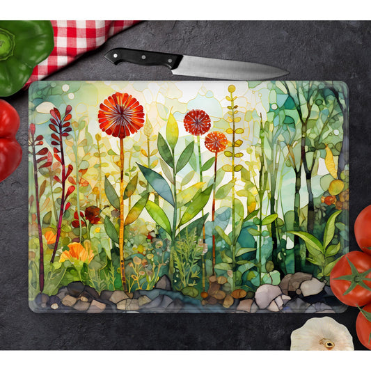 Whimsical Wildflowers Glass Cutting Board - Floral Tempered Glass Chopping Board for Cheese & Charcuterie, Functional Kitchen Art