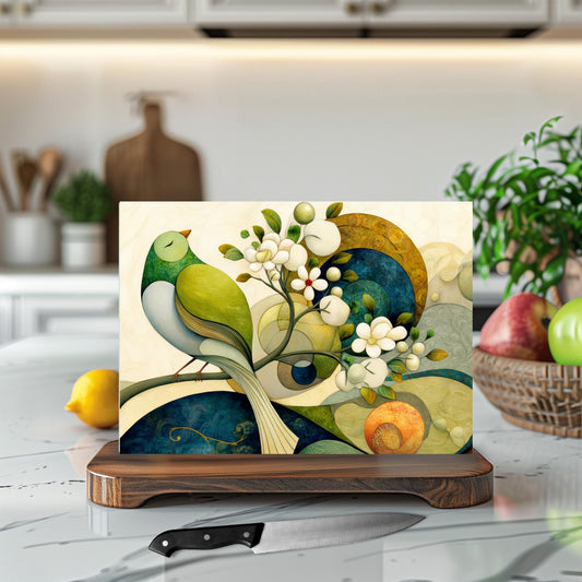 Whimsical Bird and Flowers Tempered Glass Cutting Board, Artistic Kitchen Essential for Meal Prep & Display, Ideal Gift for Home Chefs
