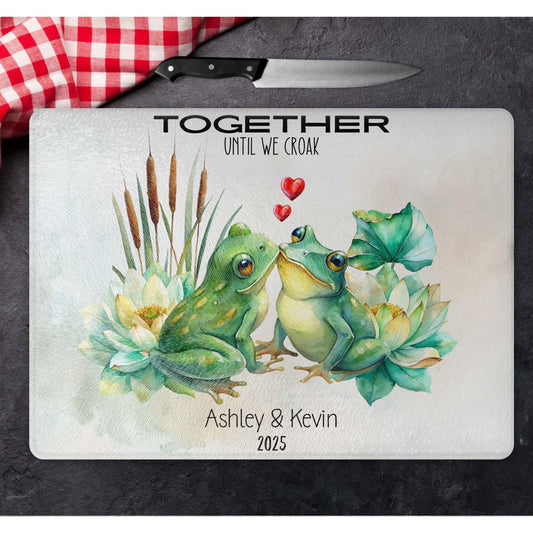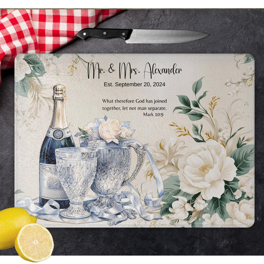Decorative Glass Anniversary Cutting Board - Personalized Name Chopping Block for Newlyweds, Charcuterie Gift, Unique Kitchen Decor