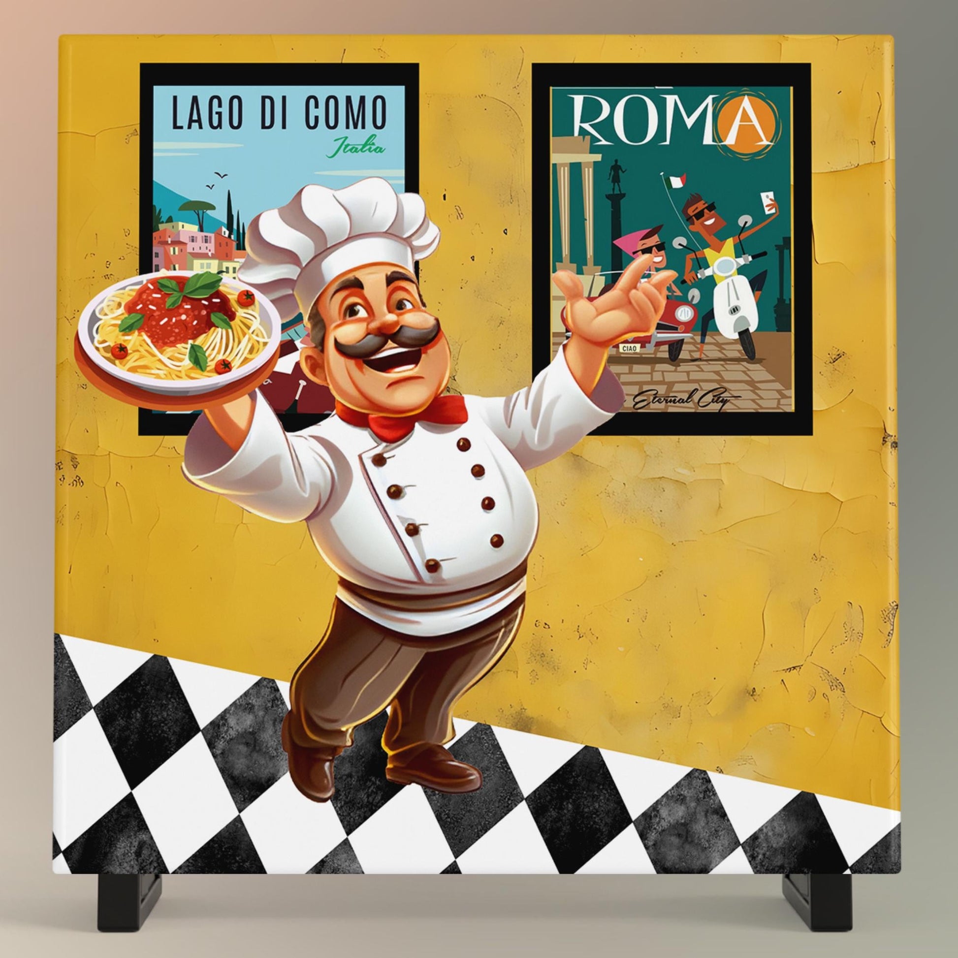 Italian Food Art Ceramic Tile, Pasta Print Wall Decor for Chefs, Unique Kitchen Gift for Food Lovers